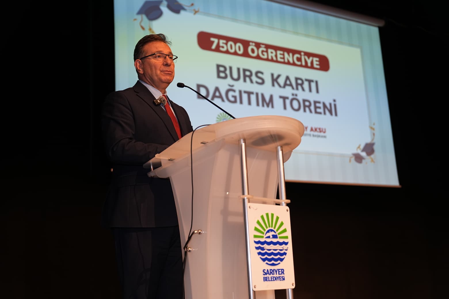 SARIYER BELEDİYESİ’NİN 7500 ÖĞRENCİYE EĞİTİM YARDIMI KART DAĞITIM TÖRENİ GERÇEKLEŞTİ Sarıyer Belediyesi’nin ilçede eğitim gören 7500 ilk ve ortaokul öğrencisinin eğitim yolculuklarına destek amacıyla sağladığı eğitim yardımı kart dağıtım töreni gerçekleşti. 11.12.2025 / 12:49 Sarıyer Belediyesi’nin ilçede eğitim gören 7500 ilk ve ortaokul öğrencisinin eğitim yolculuklarına destek amacıyla sağladığı eğitim yardımı kart dağıtım töreni gerçekleşti. Törende yardım almaya hak kazanan öğrencilerin aileleriyle buluşan Sarıyer Belediye Başkanı M. Oktay Aksu, “Geleceğimizin teminatı öğrencilerimize sağladığımız eğitim desteği bir ayrıcalık değil, Sarıyer’de dayanışmanın bir gereği, eğitimde fırsat eşitliğinin bir parçasıdır” dedi.