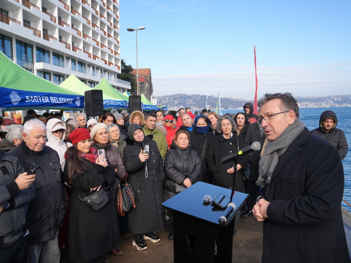 Başkan Aksu, konuşmasında şunları söyledi: Değerli konuklar hepiniz hoş geldiniz. Biz burada sadece bir şairi anmıyoruz; umutla, vicdanla buluşuyoruz. 15 Ocak 1951 tarihinde Nâzım Hikmet buradan gemiye bindi. Biliyoruz ki memleket aslında insanın içindedir. Nâzım, içindeki memleket sevdasını hiçbir zaman söndürmedi. İstanbul’dan ayrıldı ama şiirleri ve dizeleri burada kaldı; Sarıyer’in rüzgârına karıştı. Sesi hâlâ bu sularda dolaşıyor.