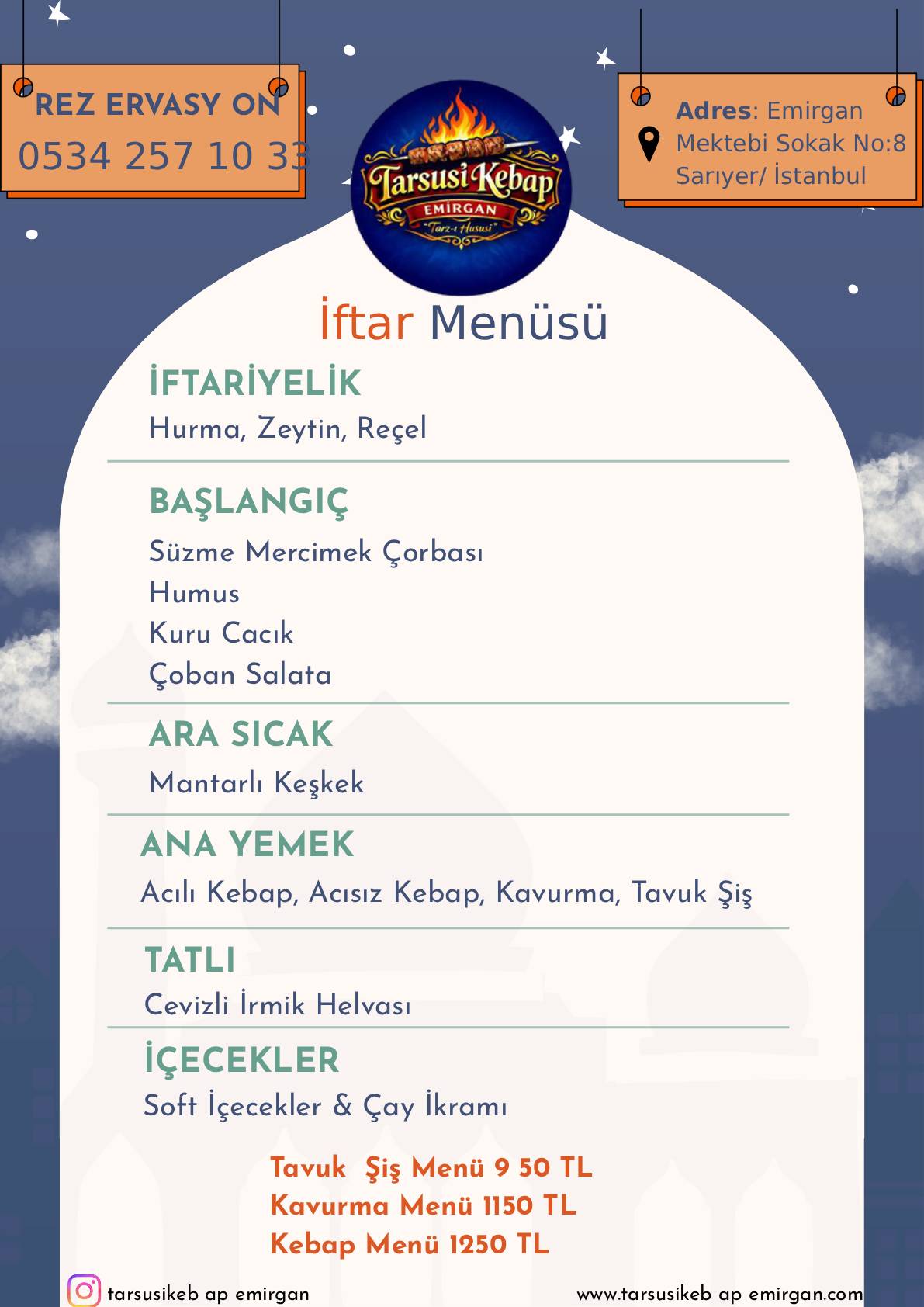 Instagram adresi: tarsusikebap.emirgan